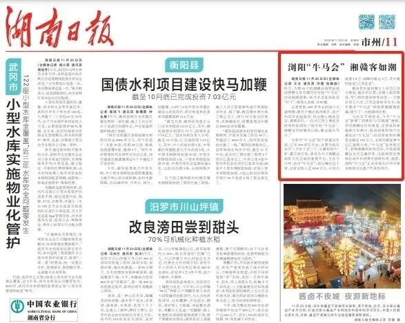 刊载于 2024年 11月21日 湖南日报 11版11月20日,为期10天的湘赣边商贸旅游消费暨文家市镇百年传统“牛马会”活动圆满落幕,15万余名客商赴会“打卡”,现场人如海、车如潮。记者看到,800多米长的南川大道两侧,数百个摊位依次排开,商户叫卖声此起彼伏,民众精心挑选品尝,满载而归。一位从江西上栗赶来的刘姓客商说:“每年的‘牛马会’,湘赣边百姓翘首以盼,像过盛大节日。”文家市“牛马会”始于清嘉庆年间,已有200多年历史,会期为每年农历十月初十至二十。从最初的牛、驴、骡交易圩场,演变为今天湘赣边商贸文化交流的重要平台。主办方介绍,此次“牛马会”,每日摊位近千家,总营业收入近1000万元,日均人流量1.5万,高峰时超过4万,其中超四成是“江西老表”。做油货生意的翟女士来自江西万载县,她告诉记者,在镇上临时租房,专门制作葱油饼等油货,一天要补货七八次。江西宜春的李先生,每年都来“牛马会”销售景德镇陶瓷碗,吸引了一大批湖南忠粉。与往年不同的是,今年“牛马会”新增了消费品“以旧换新”展销,深受湘赣边百姓喜爱。在家电和新能源汽车展台,政府政策和商户优惠送出“大礼包”,拉动家电和车辆营业额近150万元。文家市镇党委书记江敦明介绍,“牛马会”是传承百年、影响湘赣的民俗活动,对促进湘赣边文化交融传承、文旅商贸发展和拉动乡村消费有独特作用。据悉,浏阳“牛马会”正在申报长沙市市级非物质文化遗产代表性项目。